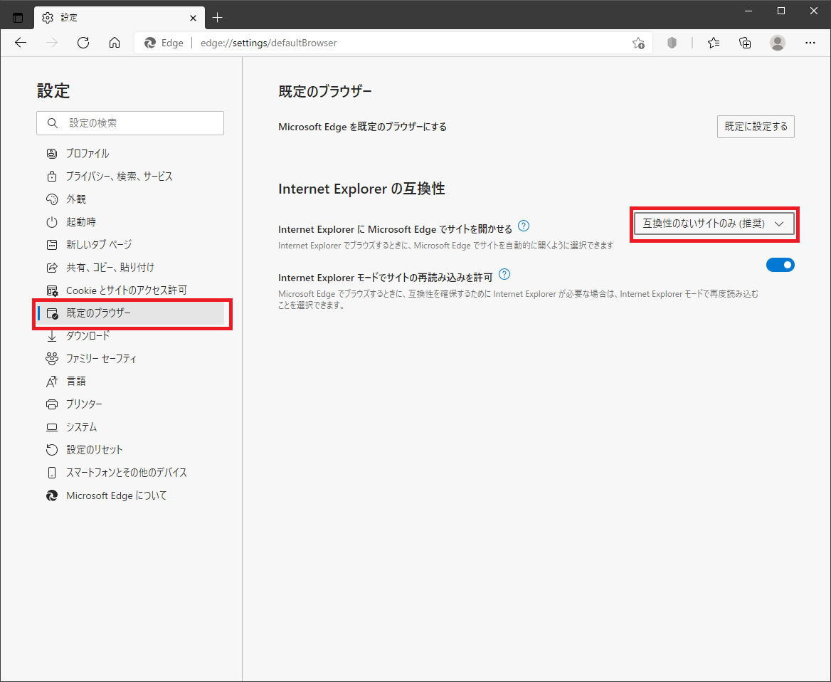 Windows 10 で「Internet Explorer」を立ち上げても「Microsoft Edge」に変わってしまう